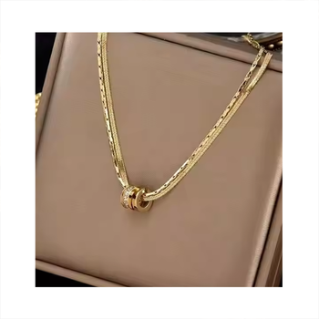 Collar de cadena de acero inoxidable doble con personalidad a la moda, collar de joyería de acero de titanio con cintura pequeña de circón de transferencia laminada
