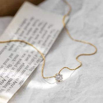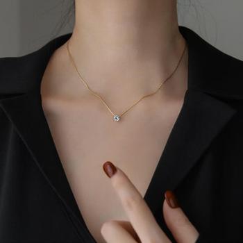 Collar con colgante de diamante de plata clásico, collar de cadena fina de acero inoxidable dorado para mujer, regalo de joyería para fiesta de aniversario